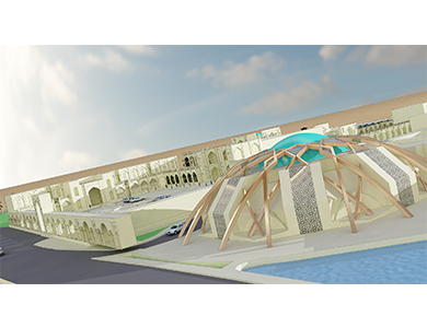 This complex is palced in 50 Kilometer away from Qom in Qom-Tehran express way. The area in which the hotelis built is about 5 hectars and it has a perfect view to the surrounding environments. Existence of the the lake of Sultan near this complex which is one of the most important tourism attraction in province make this complex more specific. The design of this complex was inspired from traditional persian architecture and we have tried to make it harmonic with desert surrounding it. Bazar, restaurent, residential rooms, mosque and amusement park is the part of this project.