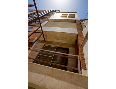 This project had been designed in land of 6 meters width. the chalanges in this design was short width of the land. making a fracture in direction of length gets the needed sunlight for the building and floors and also gives us the ability to put a stairbox with one arm in this fracture and use the maximum ability of the width. according to the limitation of subconstruction of the building floors, 3 levels had been designed for for the family usage. Fisr and third for the bedrooms, kitchen and living room and the guest saloon in the second floor. The building had been built in a land of 150 square meters and subconstruction of 456 in the winter 2011.