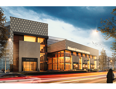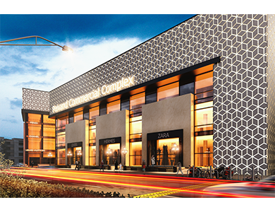 separation into two parts had made two dofferent commercial spaces. The wider part is designed for smaller shops that gives more shop in numbers and in the smaller part the bigger shops for different services. At the end the turns of the smaller part makes a better view for the residential building and the main entrance of the site.