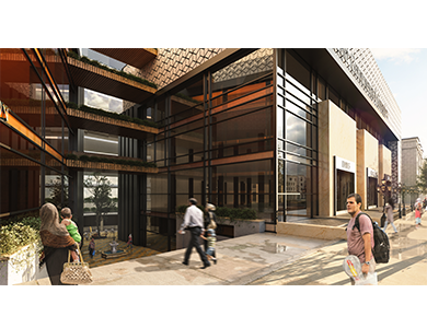 Despite the possiblity of the continuous mass design for the commercial building but due to making the good entrance for it from the main access to the site, the building has been separated in two parts for for making a access way to the residential buildings and the basement of the commercial complex.