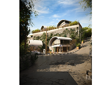 This villa complex is placed in a land of 2760 square meters in the mountain of Fasham. The plan is to place the maximum number of the independent residential villas and also for extending the projects in surounding area. according to the difficult access to the site, the use of pre-fabricated was the solution that give the maximum speed to the construction phase. Each independent villa is placed in a land of 250 square meters and 100 square meters had been designed for each floor of the building with subconstruction of 165 square meters. The villa had been placed in such a direction that could get the most of the sunlight and also to avoid the possiblity of being seen from outside to respect the Muslim's beliefs.